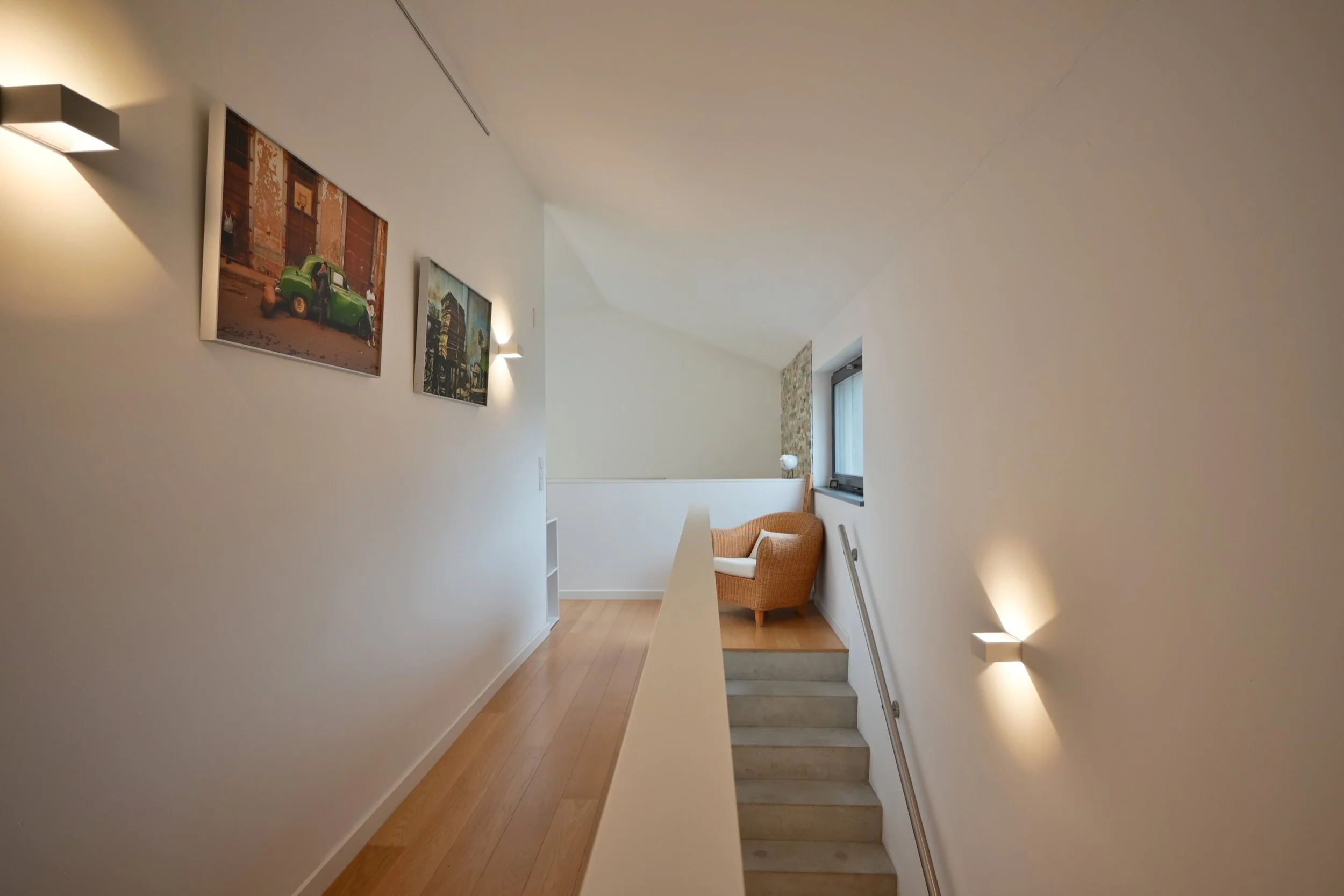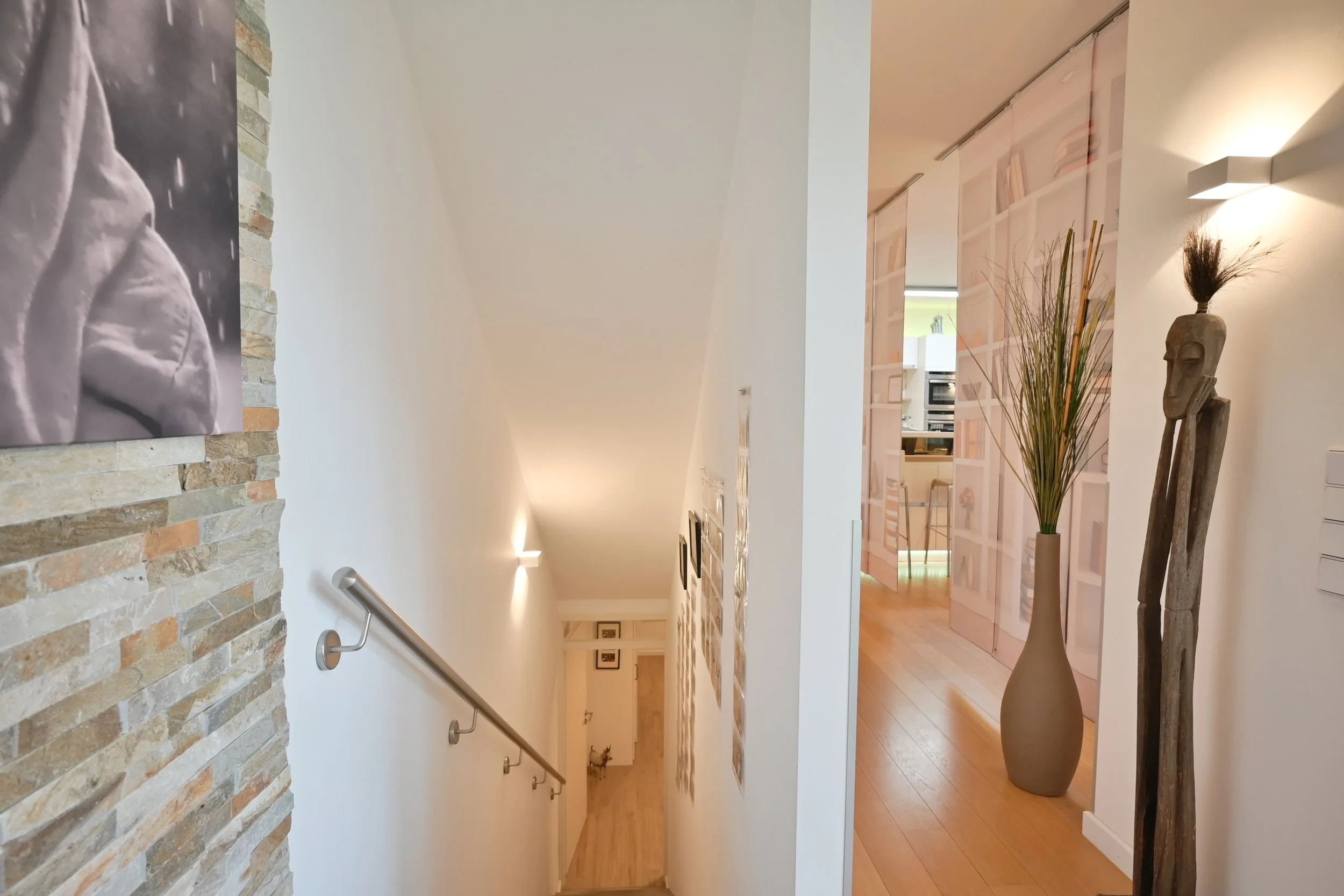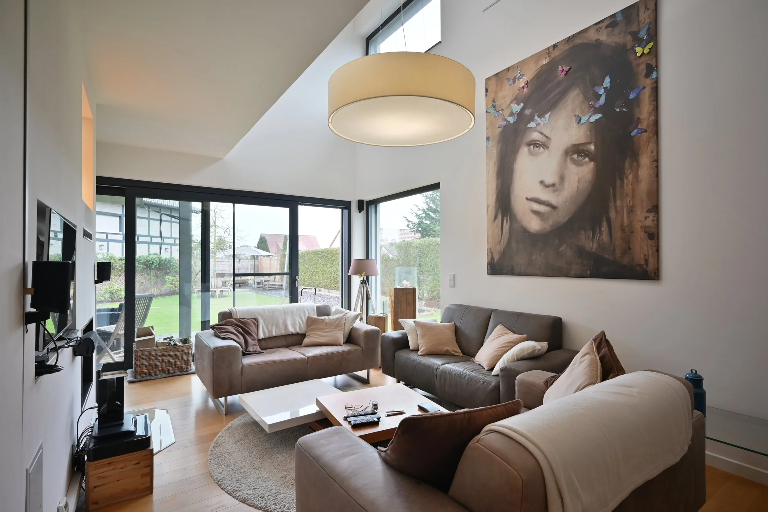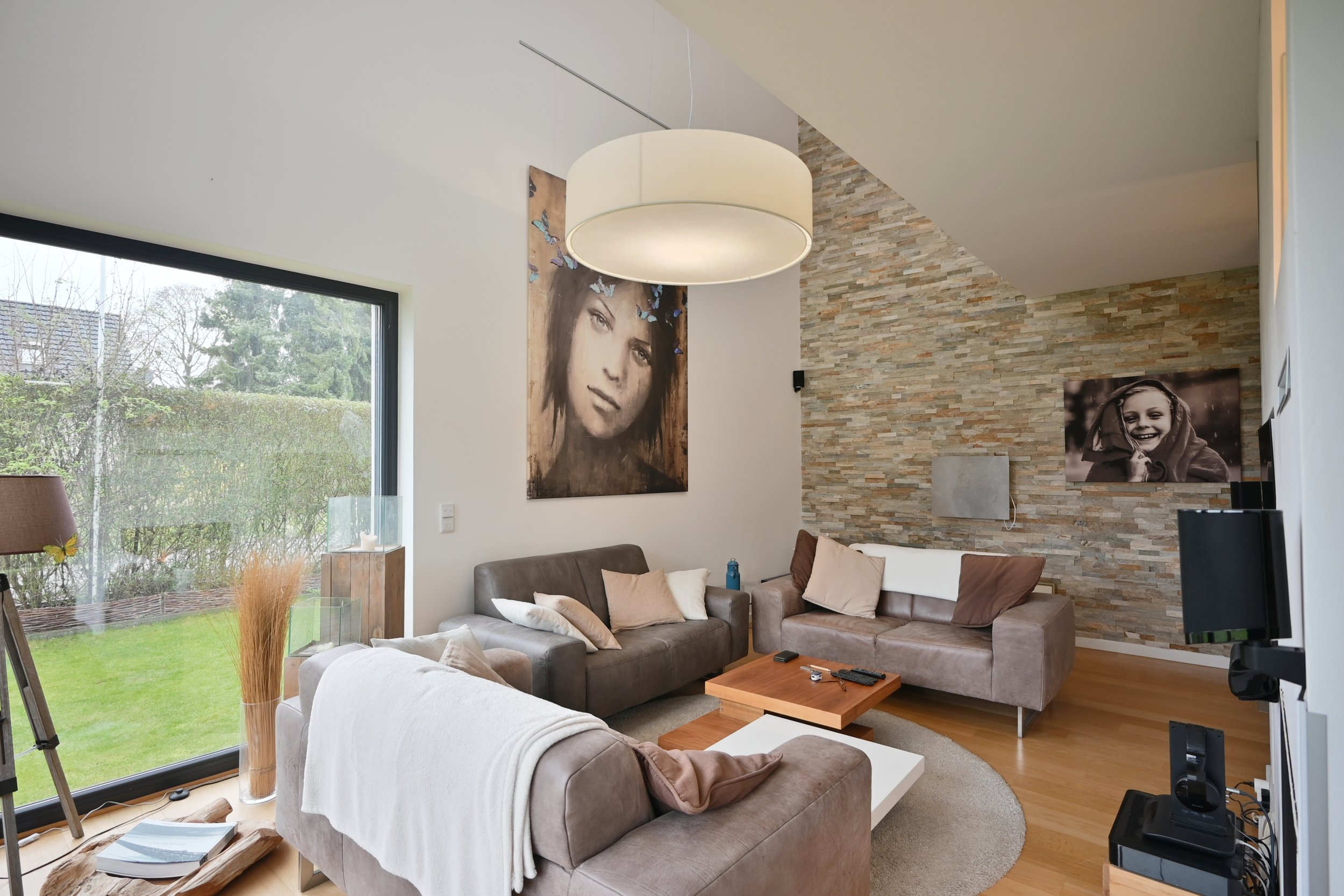 Das hier angebotene Architektenhaus wurde im Jahr 2014 auf einem sehr hohen Standard in Massivbauweise gebaut und lässt keine baulichen Wünsche übrig. Das lichtdurchflutete Haus verfügt über ca. 188 m2 Wohnfläche und ca. 307 m2 Nutzfläche. Der großzügige Wohn-und Essbereich wird durch einen Kamin getrennt und schafft so ein unglaublich wohnliches Gefühl. Auf den Böden wurde im ganzen Haus ein hochwertiger Echtholz Parkettboden verlegt, der die Fußbodenheizung im ganzen Haus besonders gut zur Geltung bringt.