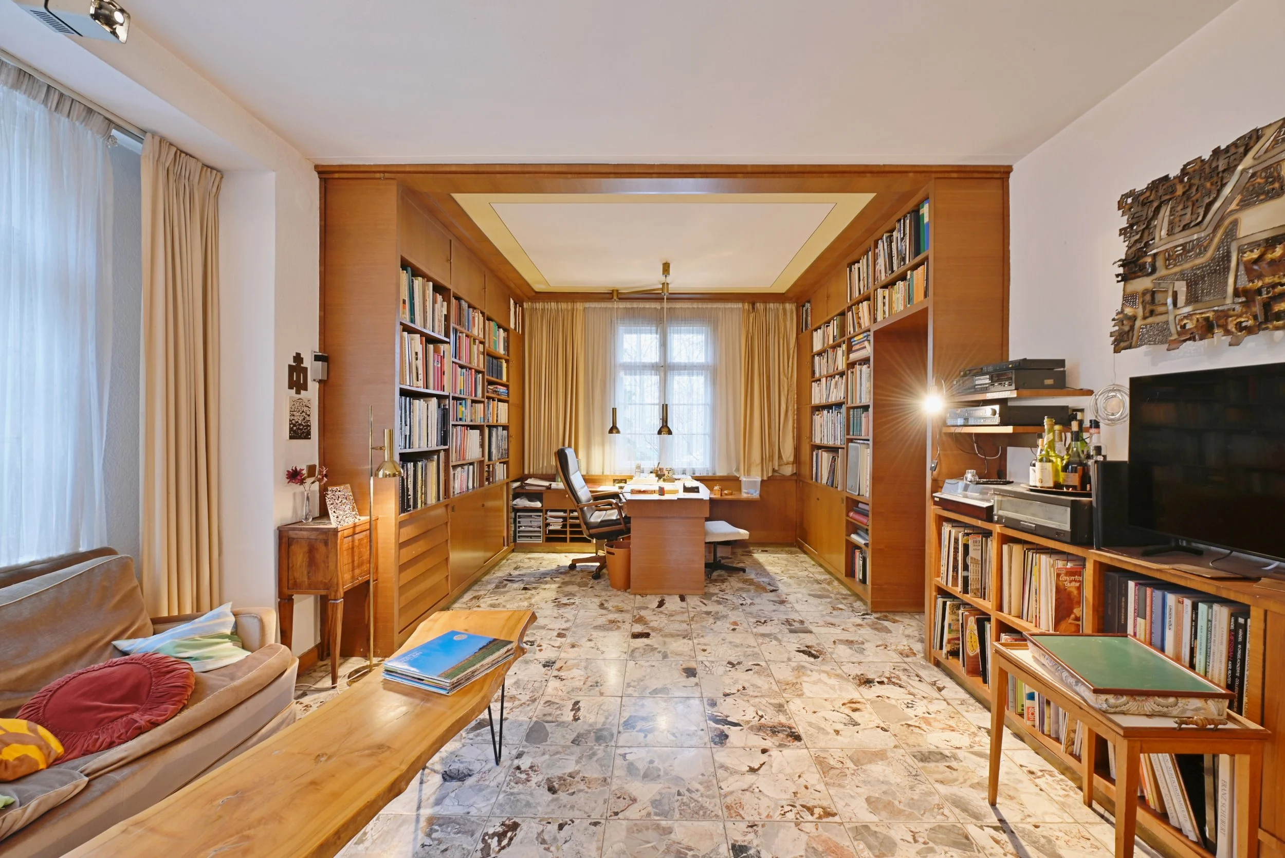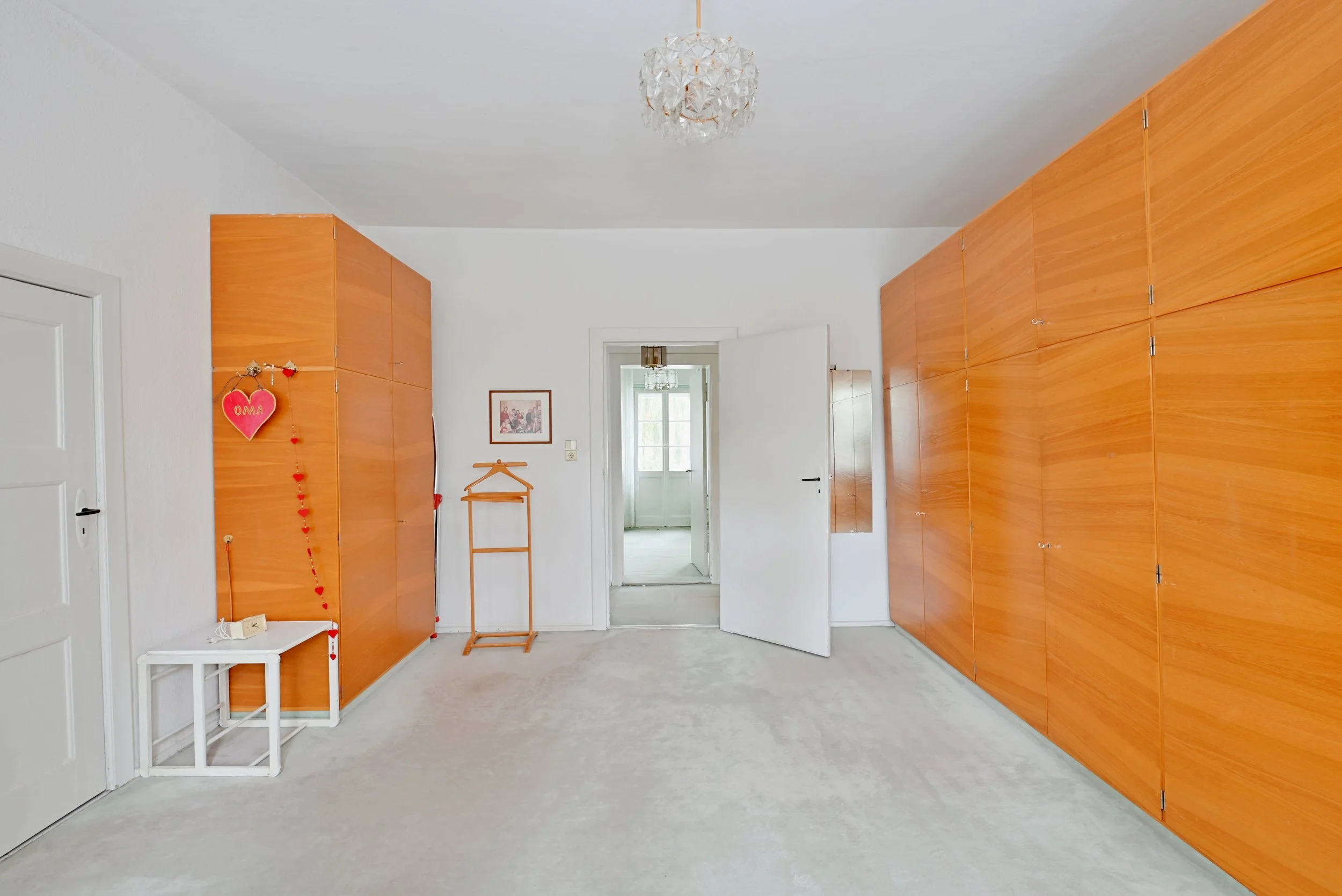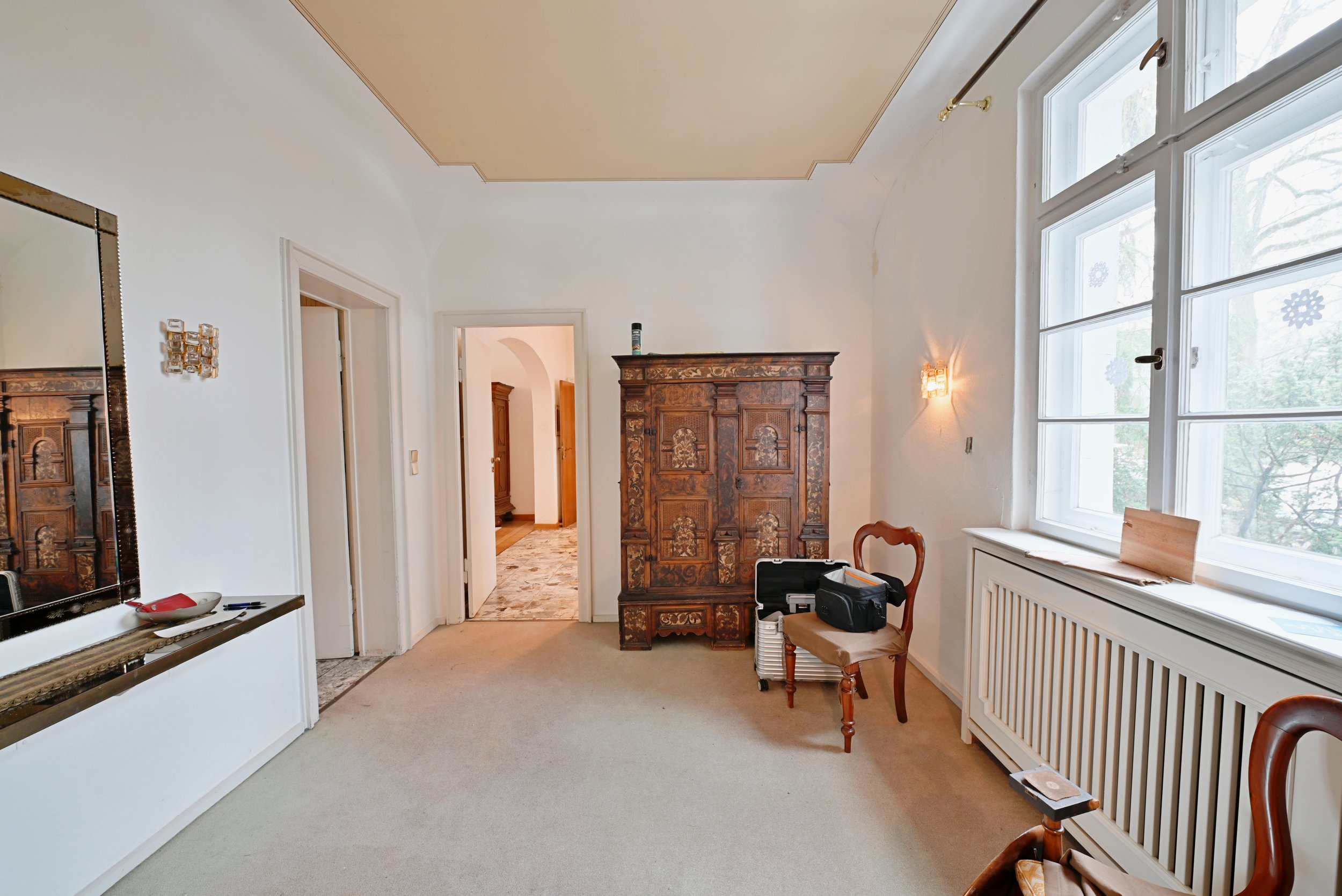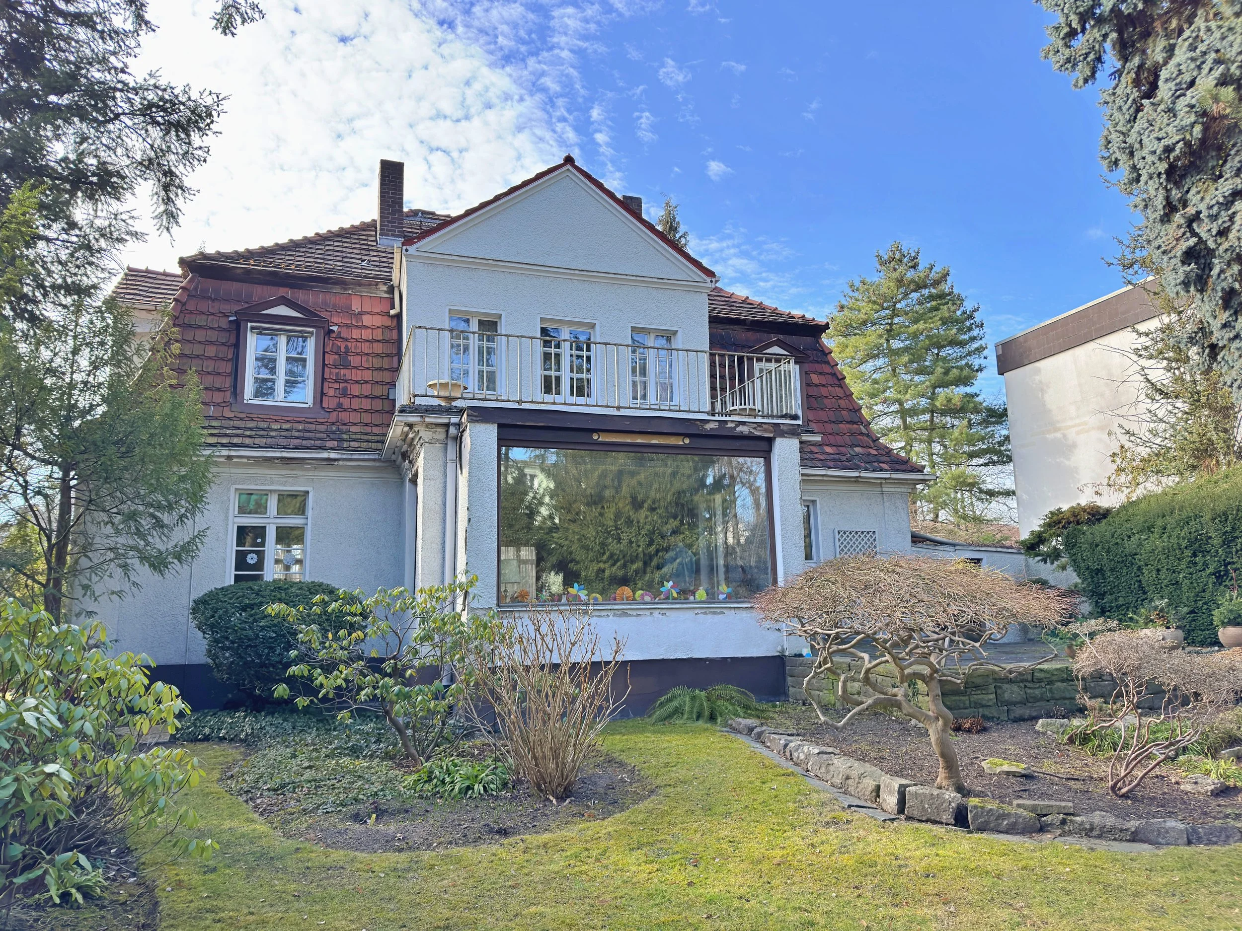 Der Außenbereich bildet einen weiteren Höhepunkt. Das weitläufige Grundstück wirkt parkähnlich und bietet trotz der urbanen Lage eine angenehme Privatheit. Von der Terrasse lässt sich der Blick ins Grün öffnen und die Wohnräume nach außen erweitern. Eine Garage ist vorhanden und ergänzt das Angebot um komfortable Stell- und Nebenflächen. Gleichzeitig ist wichtig zu betonen, dass die Immobilie stark renovierungsbedürftig ist. Die Ausstattung entspricht in wesentlichen Teilen nicht mehr dem heutigen Standard und erfordert vor einem erneuten Einzug eine umfassende Überarbeitung. Je nach Anspruch und geplanter Nutzung sind Modernisierungs- und Instandsetzungsmaßnahmen insbesondere in den Bereichen Abdichtungen, Bäder, Küche, Haustechnik sowie energetische Themen einzuplanen. Genau darin liegt jedoch auch der besondere Reiz dieser Villa. Sie vereint Substanz und Charakter mit der Chance, ein stilvolles, exklusives Zuhause zu schaffen, das den Charme des Originals bewahrt und zugleich zeitgemäß interpretiert.